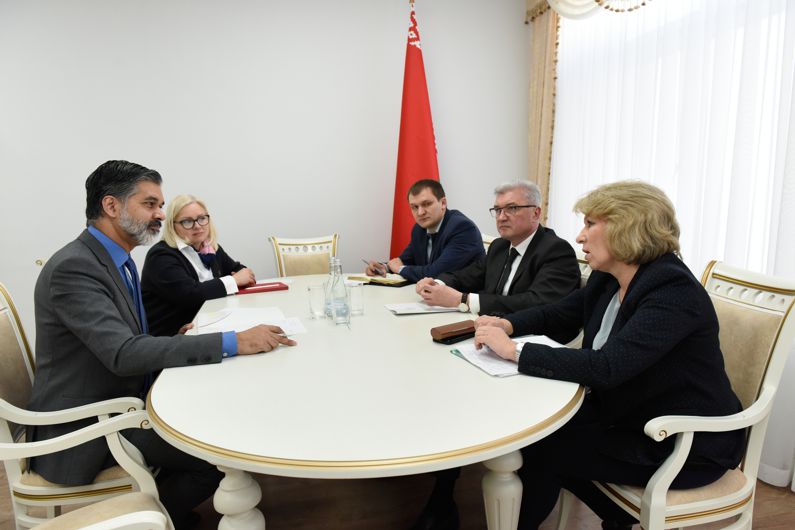 Міністр аховы здароўя Валерый Малашка прыняў у ведамстве дырэктара Групы рэгіянальнай падтрымкі ЮНЭЙДС краін Усходняй Еўропы і Цэнтральнай Азіі Вінэя Салдану. На сустрэчы таксама прысутнічала намеснік міністра аховы здароўя - галоўны дзяржаўны санітарны ўрач Наталля Жукава.